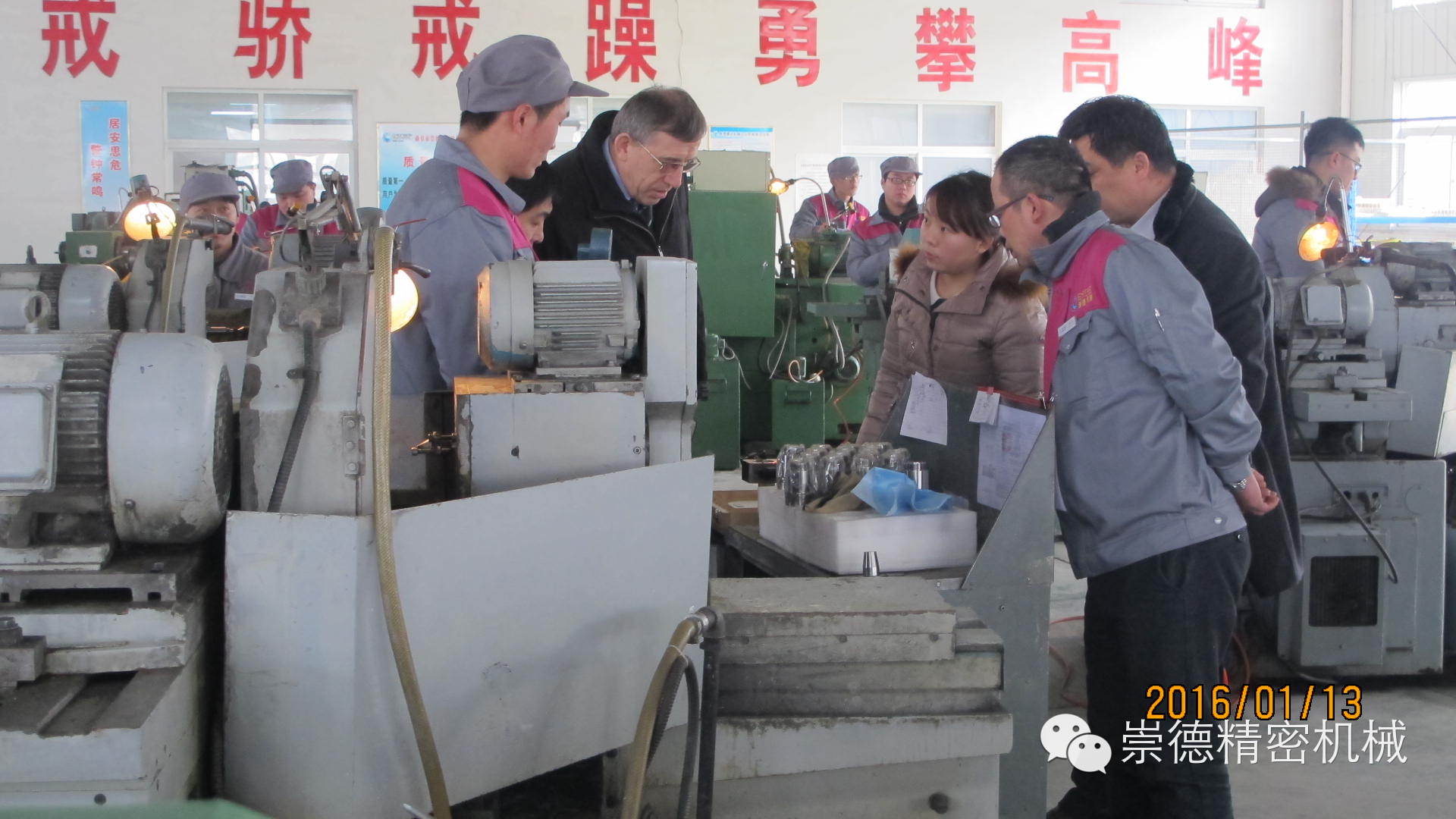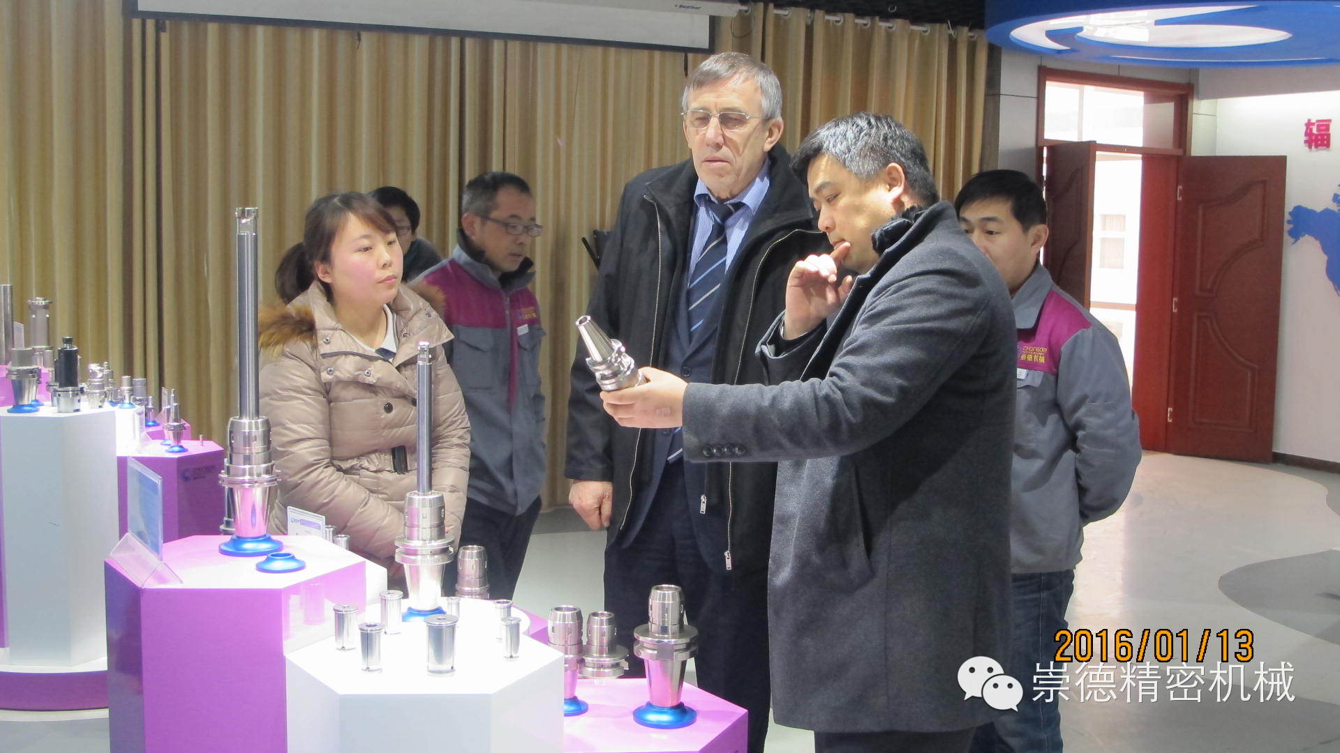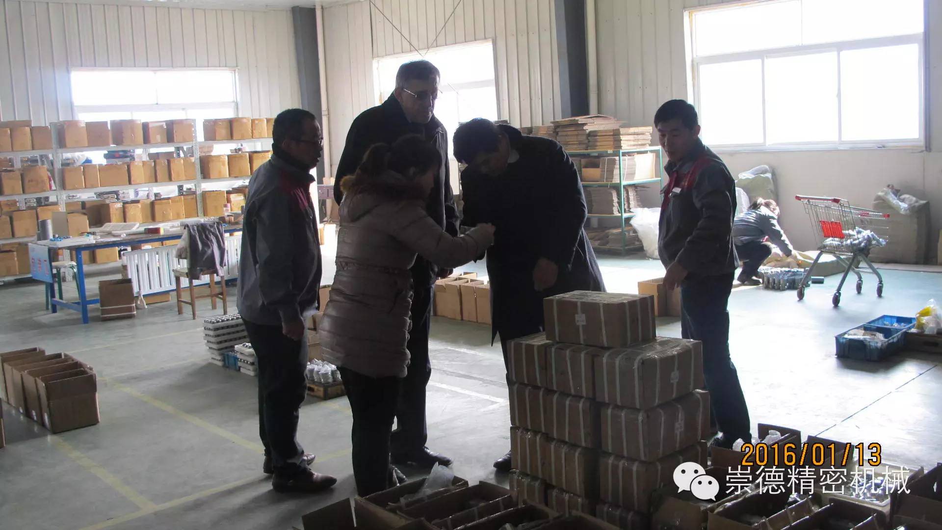 1.13日上午十點,俄羅斯客戶應約抵達崇德。總經(jīng)理帶領(lǐng)崇德高管熱情迎接,還沒等緩解一路的車馬勞頓,我們這位外國友人就迫不及待的想要參觀一下崇德公司。他說他想認真看看崇德產(chǎn)品,在意大利展會上他對我們的產(chǎn)品非常滿意。