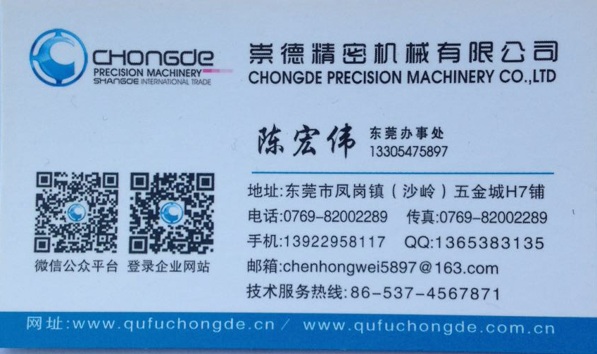 這張名片你有沒(méi)有很熟悉?是的,今天小編隆重為大家介紹的是崇德機(jī)械--東莞鳳崗鎮(zhèn)辦事處,看陳老板如何在東莞鳳崗叱咤風(fēng)云。