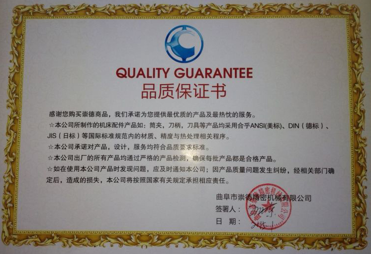 之所以我們崇德公司有如此高的好評(píng),除了我們有過(guò)硬的品質(zhì)保證外,更重要的是崇德公司的售后服務(wù)工作做的好。我們陳老板鄭重承諾:凡東莞鳳崗鎮(zhèn)附近有需要的客戶,你只要一個(gè)電話,我保證30分鐘內(nèi)趕到。這也是我們公司在中國(guó)的多個(gè)片區(qū)就會(huì)設(shè)立辦事處的重要原因--崇德讓每位刀具使用者安心,放心,舒心。