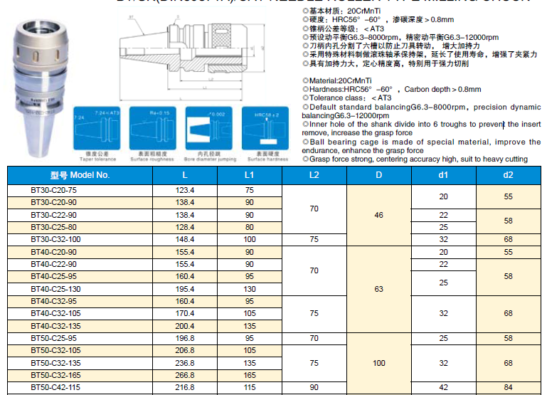 BT/SK(DIN69871A)/CAT 強力型立銑刀柄